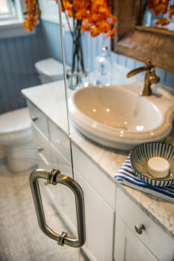 ![]() Krásně vypracované dřevo v tyrkysové barvě vnáší do pokoje vkus. | ![]() Malá koupelna pro děvčata. | ![]() Hlavní ložnice je laděná do jemně tyrkysově modrých tónů, které jsou doplněné bílou a krémovou. |